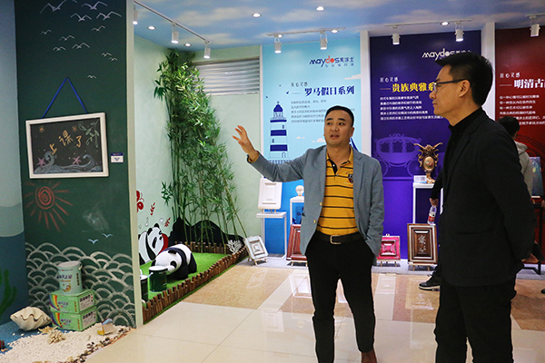 彩乐园杨总带领全包圆蔡总参观彩乐园产品展厅