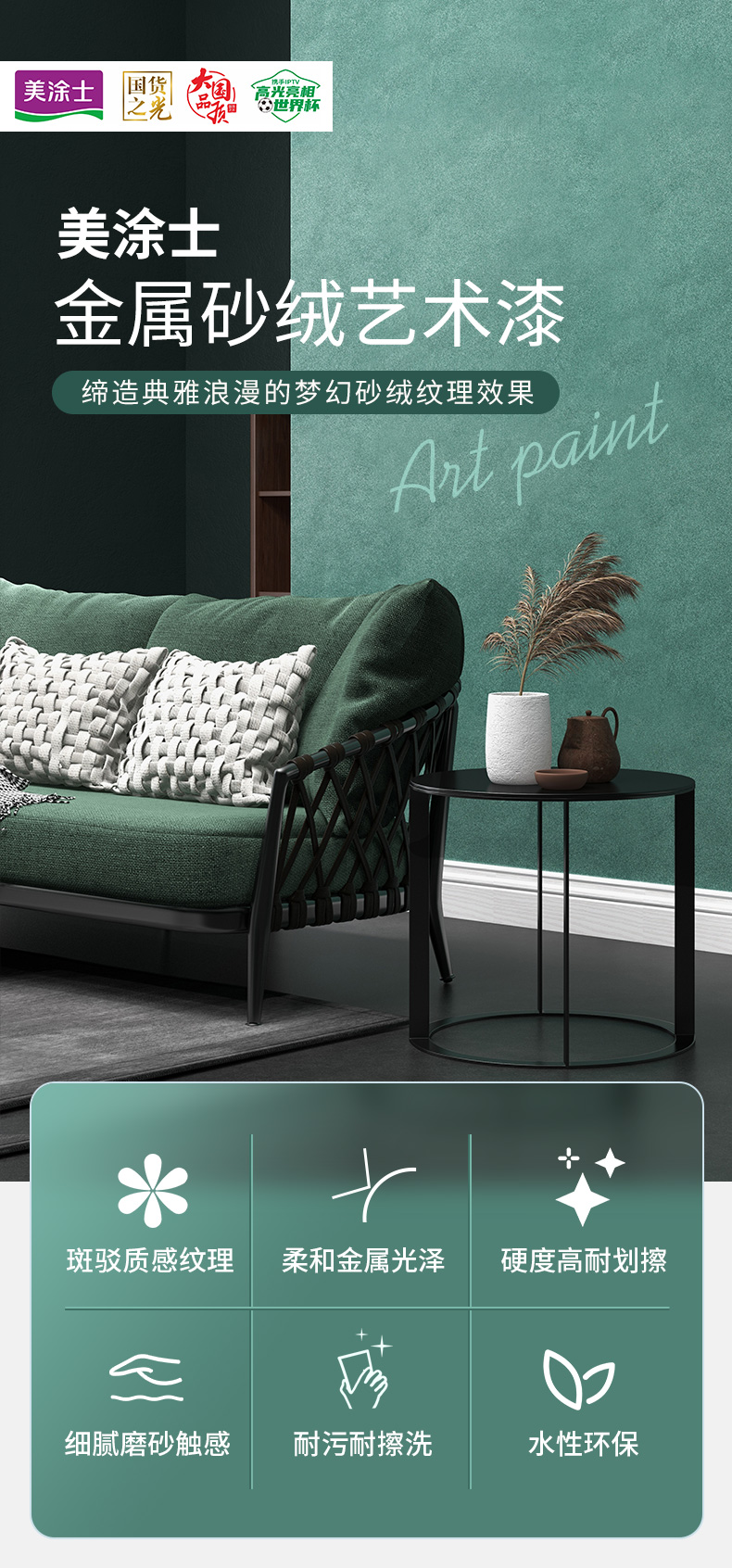 彩乐园艺术漆,带有金属光泽和磨砂触感效果,是砂与绒的完美质感结合,纹理有序而又幻变,效果细腻而又典雅,打造出大气与精致兼备的高级格调!
