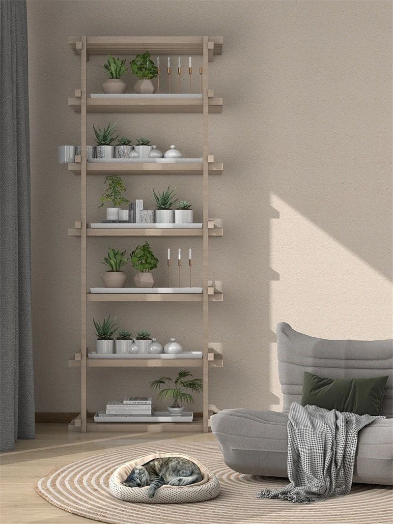 客厅整体灰色调的墙面空间,让空间显得更加简雅大气,摆上浅色布艺沙发、地毯,加入绿植盆栽的装饰点缀,营造出一种简约朴素的档次气质。